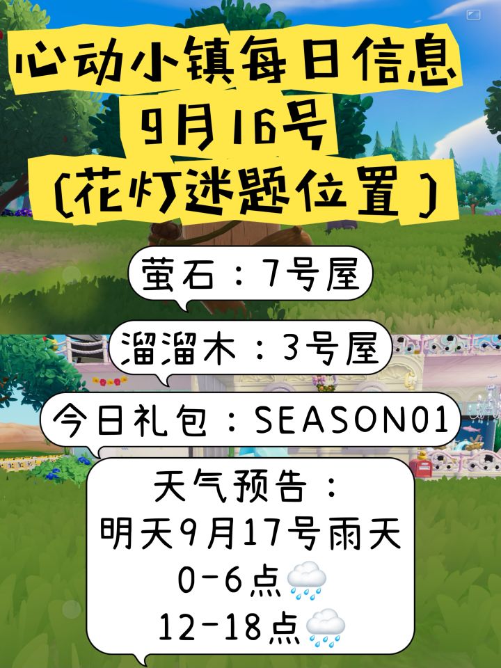 心动小镇9月16日萤石溜溜木位置天气同赏花月迷题位置