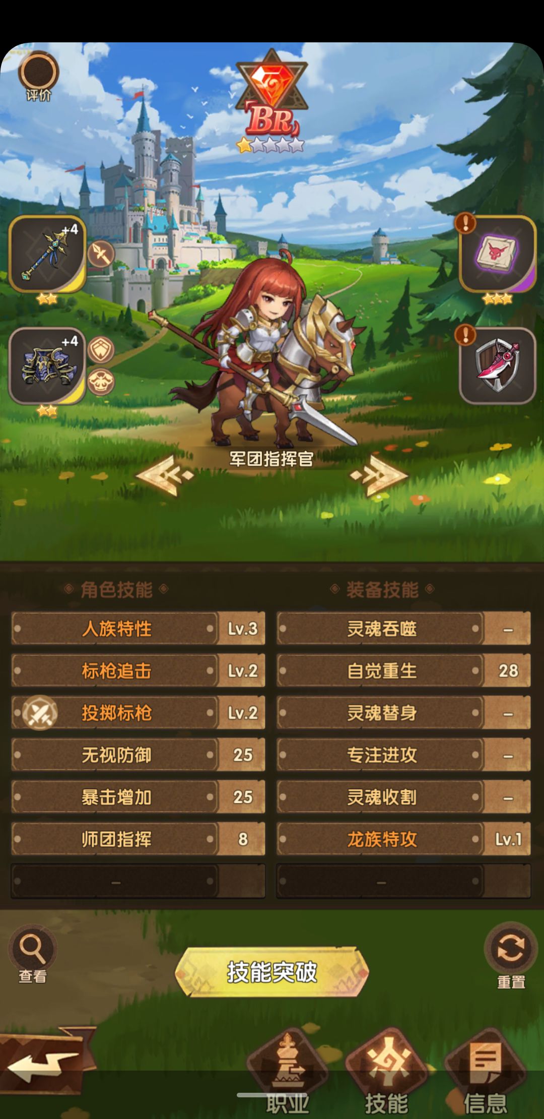 附上军团指挥的原配装和更新后的投枪吃暴击加成的配装,用了几场,基本必爆用起来挺舒服的(无视防御的暂时没有双技能纹章,就不测试了),因为双技能纹章,少了灵魂收割的属性和灵魂替身,看个人喜欢了,不过荣耀骑士就显得更加必要了,否则推不起高属性。