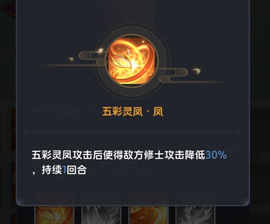 凤凰:一定要到高级,可以解锁两个高级分支天赋。首选五彩灵凤朝,战斗开始时释放一次攻击。这个攻击优先级是优于所有修士的,再配合五彩灵凤凰鸣或者五彩灵凤凤,可以将开场BUFF拉满