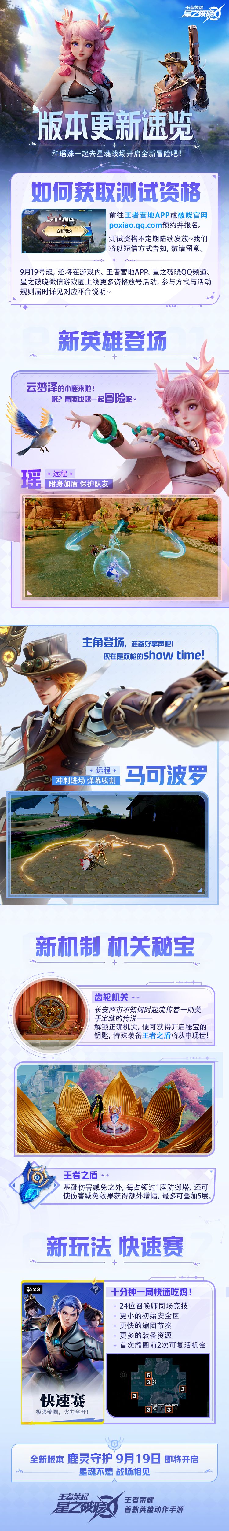 S0季前赛“鹿灵守护”版本即将上线!9月19日,和瑶妹一起前往星魂战场开启全新冒险~