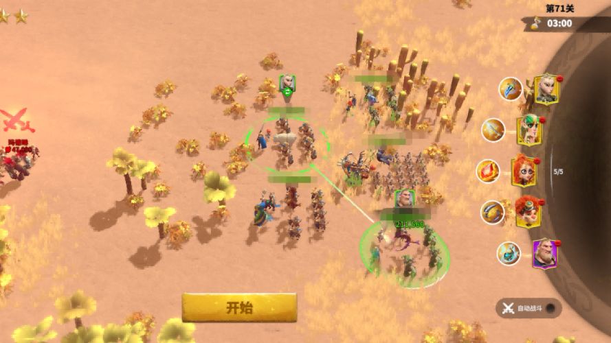 这种情况下,可以多设置一些远程输出部队,只保留1-2支近战,在优先清除掉对面远程输出后,利用残血近战部队吸引仇恨,拉着对方近战绕我方远程部队兜圈子,让我方远程部队不会受到攻击,安心全力输出。
