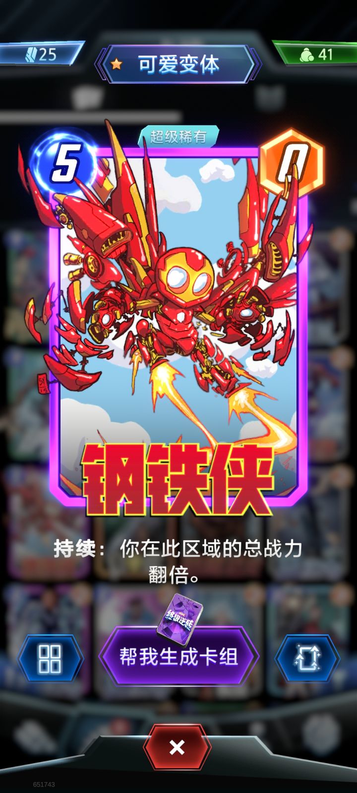 钢铁侠:这张牌就不错,可以直接区域翻倍,经常可以逆风翻盘,这个区域战力越高,翻倍越高。