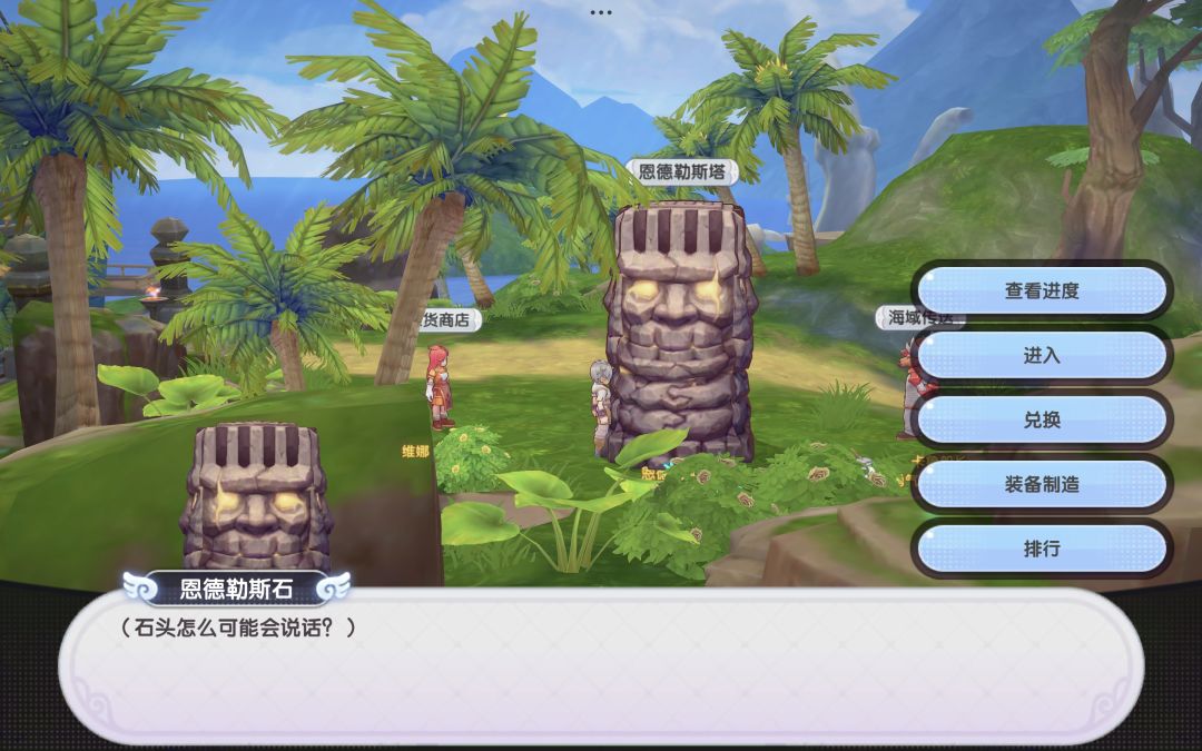 在柏伊亚岚岛的恩德勒斯石处,可以查看当前进度、排行,进入恩德勒斯塔以及兑换和改良限定装备。