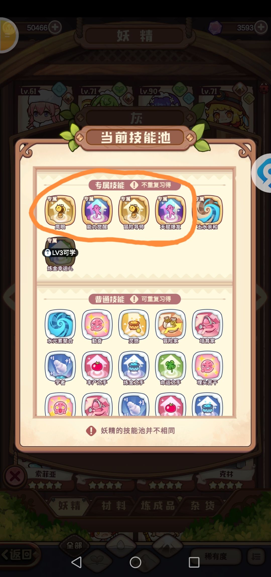 第二步数值不够用洗技能。技能有如图四个都可以加采集点(细节方面有些上限+5有些+8)