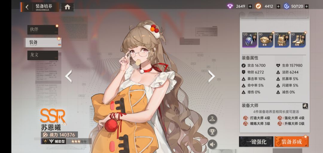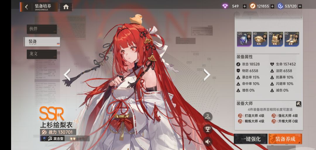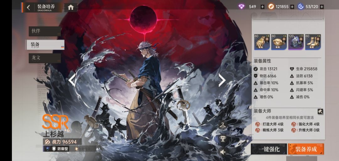 重点:装备培养。优主角三件,上杉生命,主C攻击。再到其余两人攻击。等于一共只用7件装备。