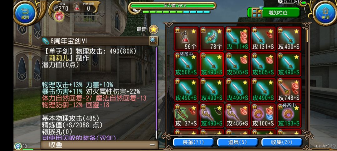 装备配置: