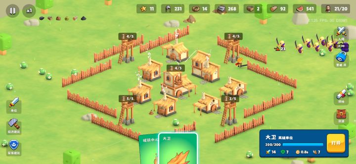 防御方面:有石墙科技放石墙,没有就放木墙(要升满),哨塔前面随便丢几个就行,怪都是看到啥就打啥