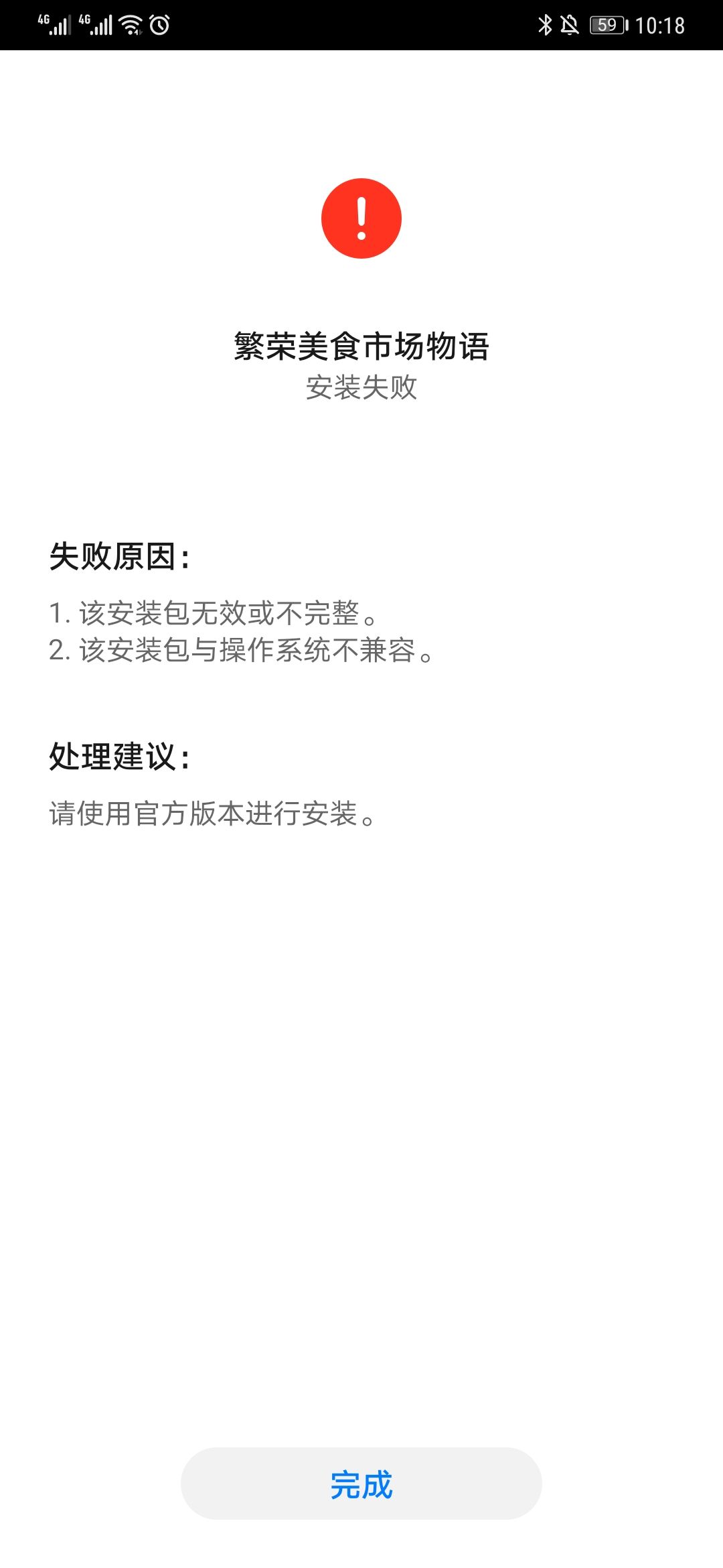 华为mate20pro安装失败。