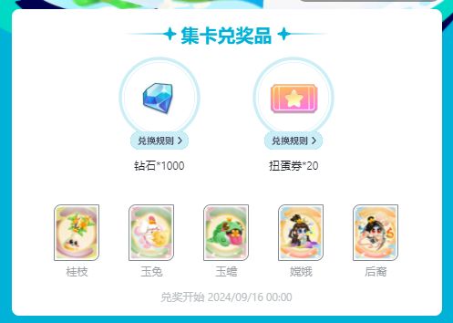 集齐“桂枝”“玉蟾”“玉兔”“嫦娥”即可兑换奖励【扭蛋券*20】,共15份