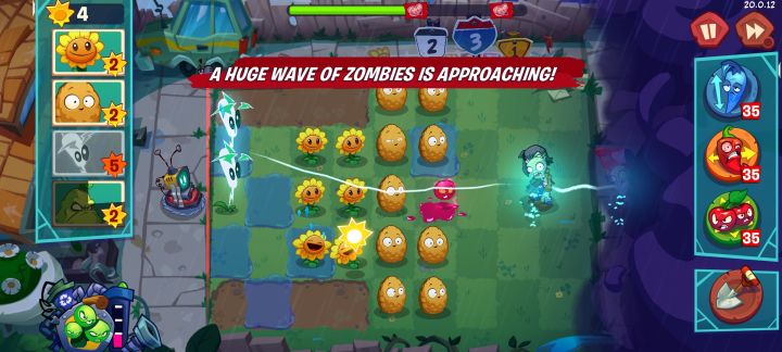 现在打死发红光的僵尸会掉落能量,点击能量会给葡萄充能。点击有能量的葡萄会提前释放爆炸葡萄(收集得越多,扔的葡萄数量越多)