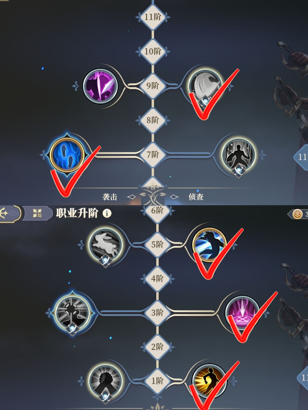 一阶:右边,地方无伤状态,增加输出。走秒杀路线,神兵3秒小兵,前期秒杂兵。