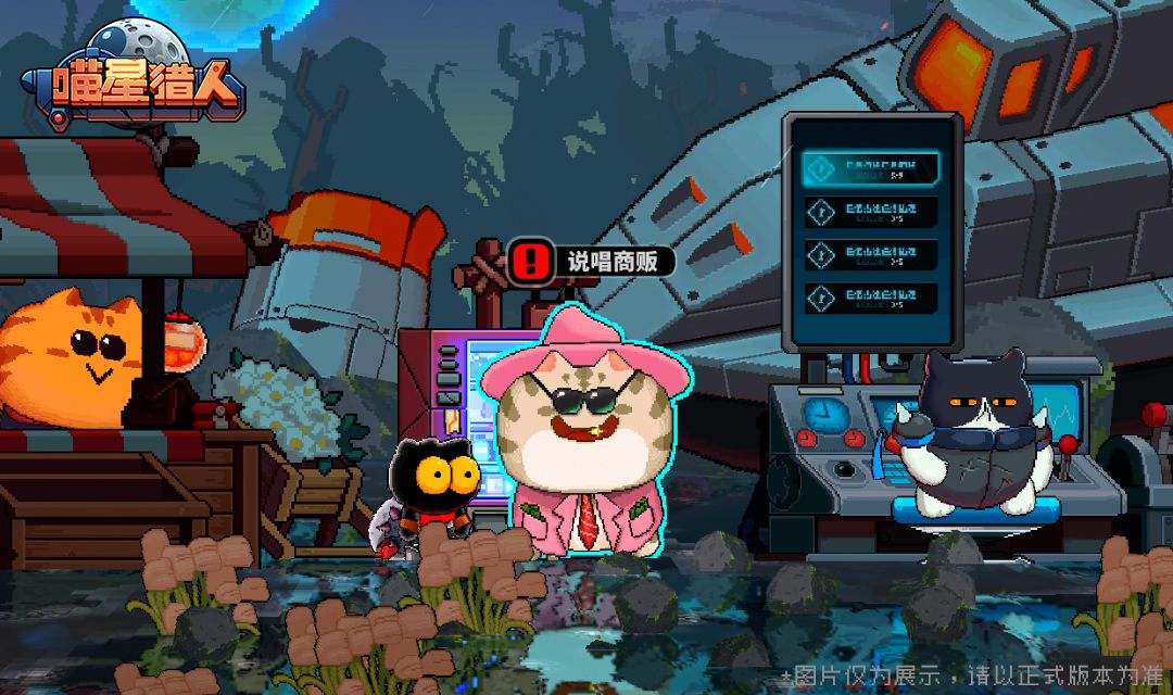 戴粉帽,穿西装,一颗金牙发着光,他就是说唱商贩!在他这里有喵星稀缺的商品,礼包、宝箱、角色、皮肤统统都有,如有兴趣请找他,他会教你唱rap!