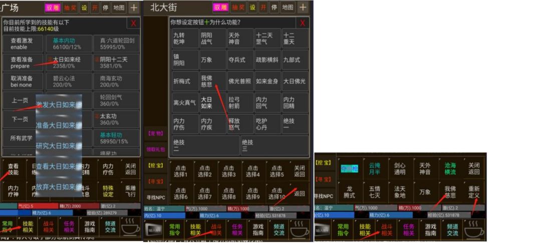 去新人战斗里打测试人偶,当你打他时他会掉落转世丹和师门贡献丹,点击画面上面的设(这是输入机器人指令的地方,以后有其他指令也是如此)然后输入 get zs dan;duihuan zs dan;get 10gongxian dan;duihuan 10gongxian dan;