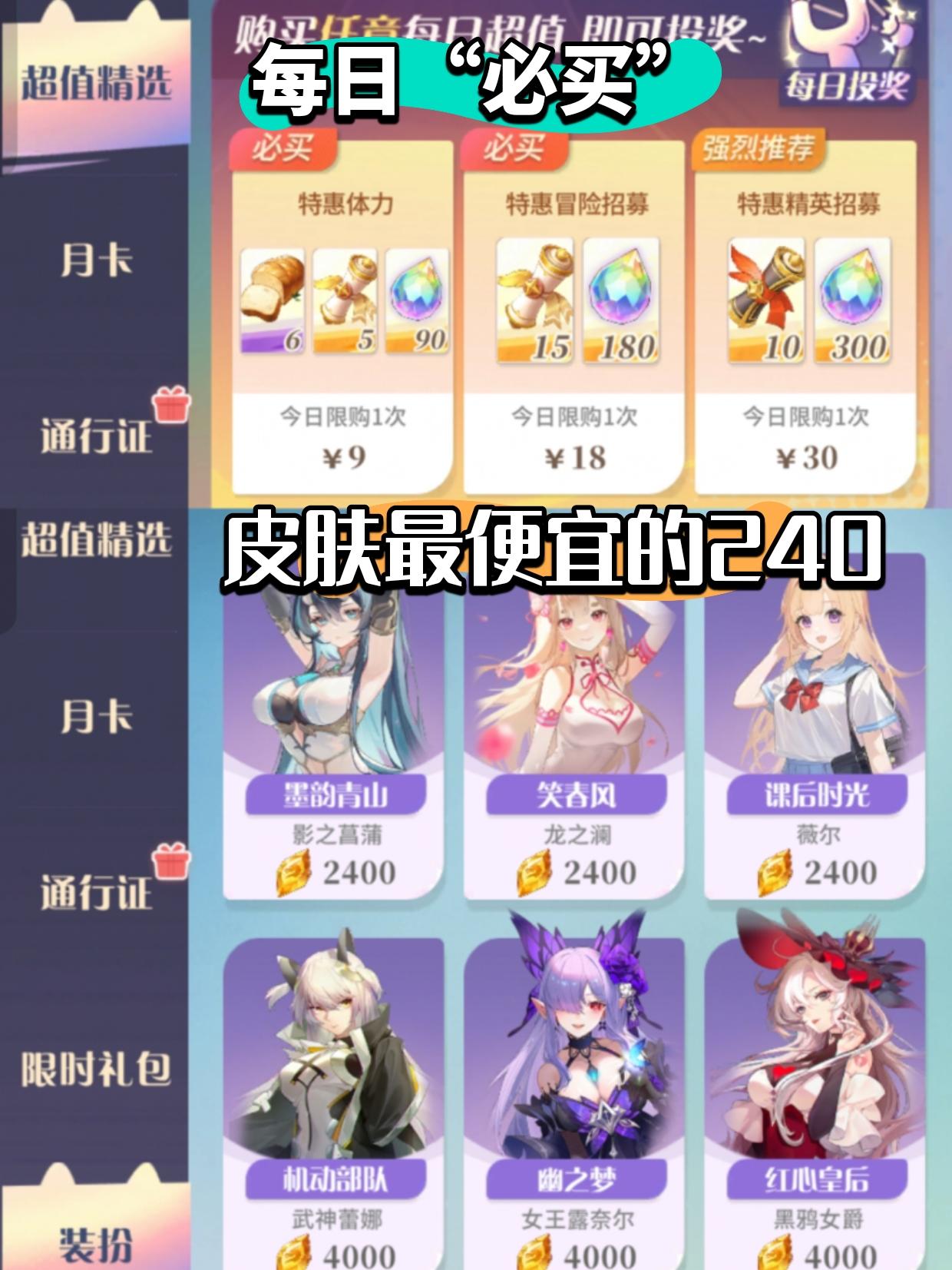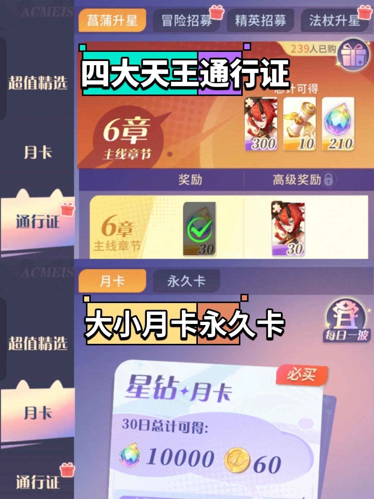 5️⃣氪金方面:标准化的工业流水线氪金模式,包括但不限于:每日限购,终身限购,大小月卡,永久卡,日礼包,周礼包,弹窗限时礼包,四大天王通行证等等。