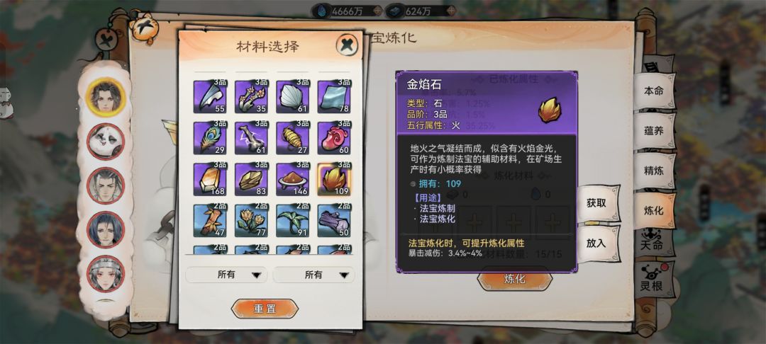 部分法宝炼化材料可以提升速度属性。