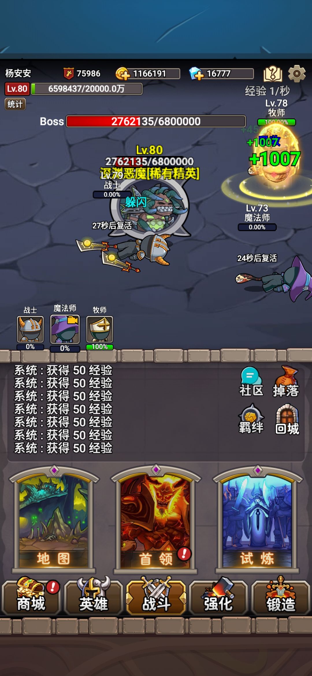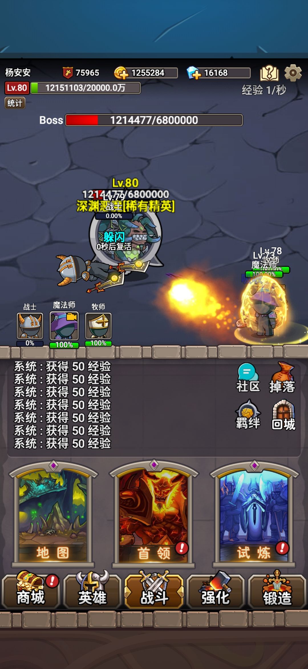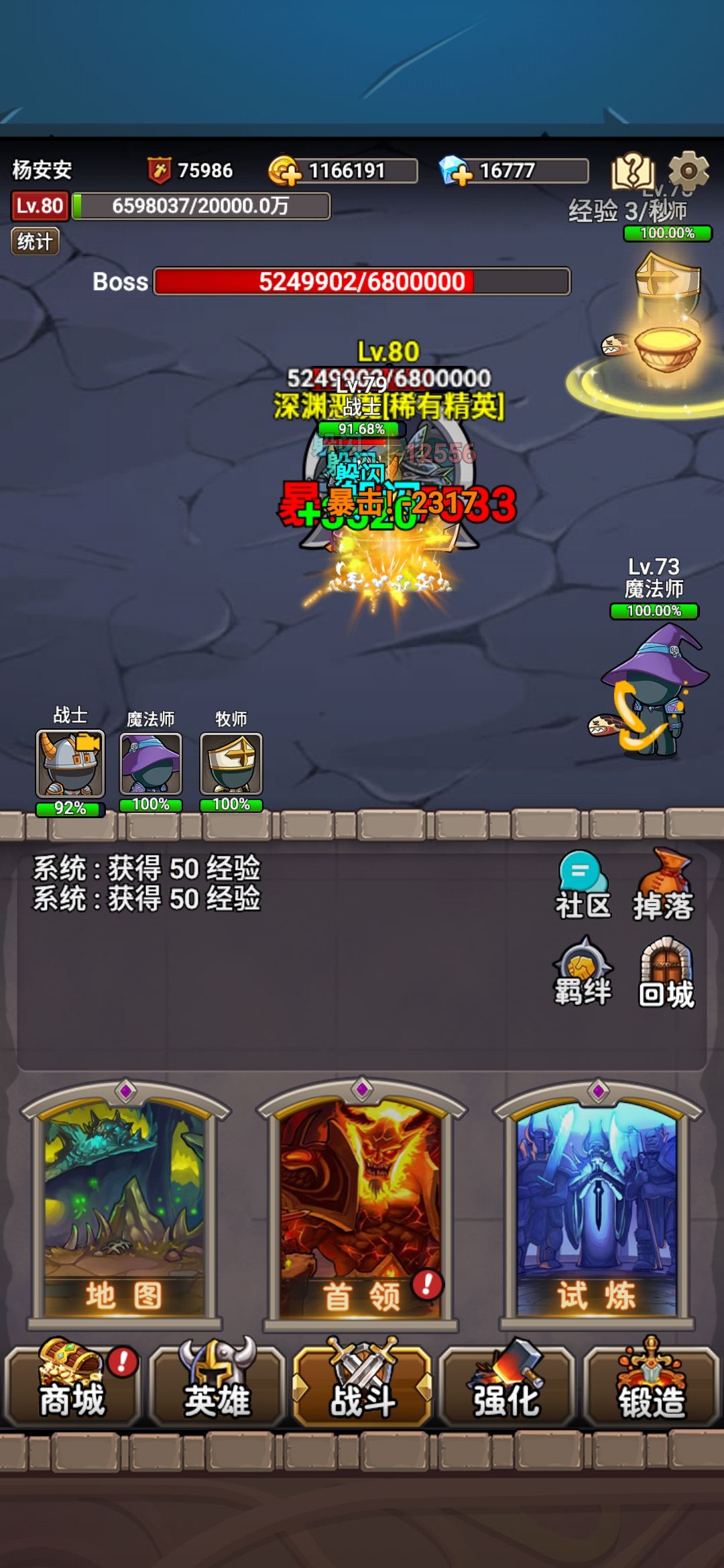 阵容方面这里选战士,法师,牧师。法师和牧师先站好位置,推荐BOSS右下角,先把BOSS打到快半血,然后把战士移开,等BOSS半血爆发一下,战士再跳过去刷出,放完技能就跑,这么循环就能很快打完,当然我们是懒人,能挂机过就行。等小怪死了就不管战士,牧师和法师就站BOSS右下角挂机就行,只要绿火打不到就可以安稳挂机。注意事项如果用神器吞噬者法杖,法师和牧师必须站一起,不然BOSS被恐惧乱跑,法师牧师被碰瓷了半天就白打了。