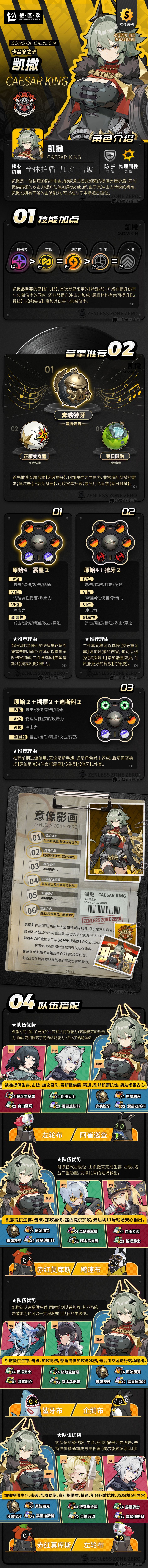 先让我们来看看下面的一图流攻略吧,一图流介绍了凯撒的技能优先级、音擎推荐、驱动盘推荐、关键影画以及队伍搭配五大版块,希望对想入手的小伙伴有所帮助。