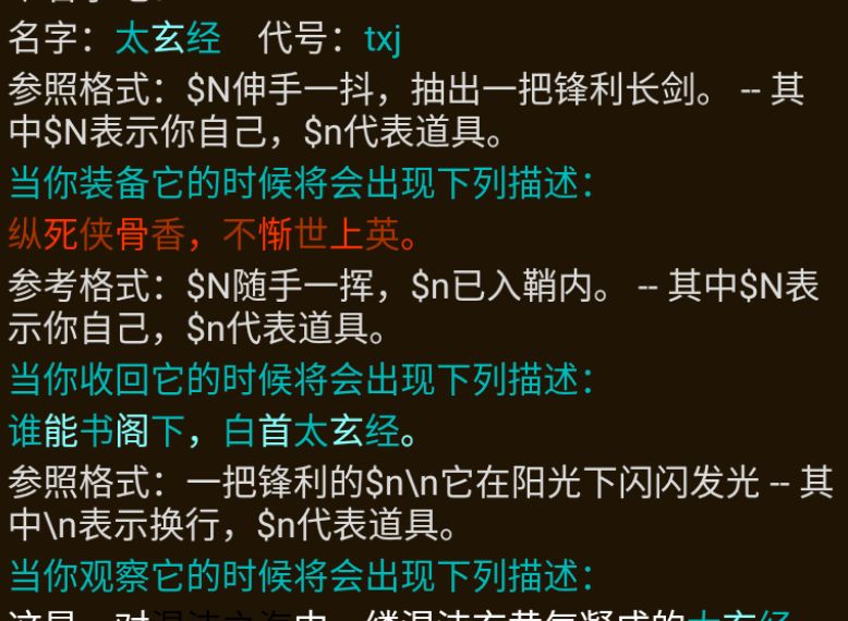 装备: wieldmsg 装备时的描述。 例:$HIB$天神降世。