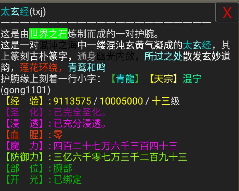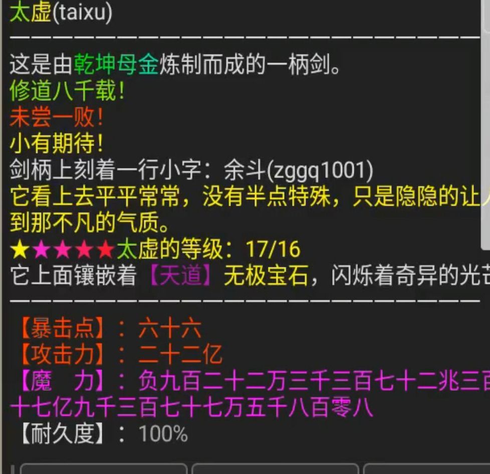 铁索第一把满强化镶嵌无极宝石的母金武器,魔力值显示可能显示有误需调试