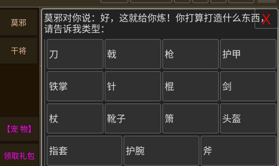 自制神兵:自行打造,绑定玩家,开光后丢失可被召回,使用损失耐久需要修理,不被破兵。