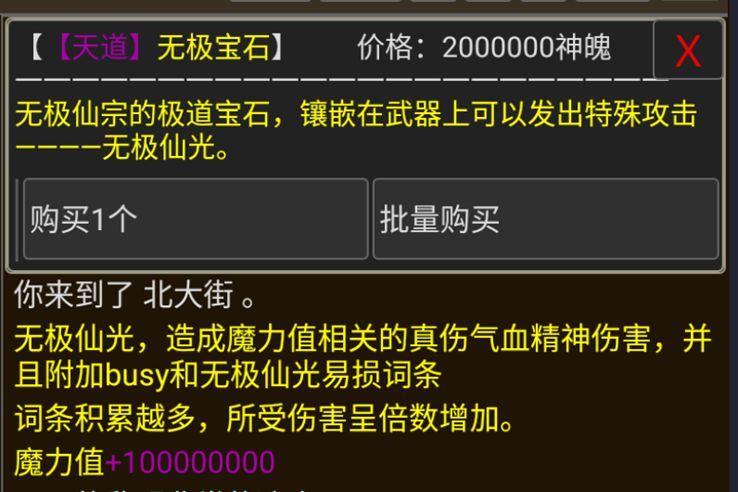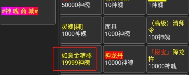 神魄商城-降龙杵:打龙专用,群攻,一次破除100万龙力,需要充能,100神魄充1次用10次。