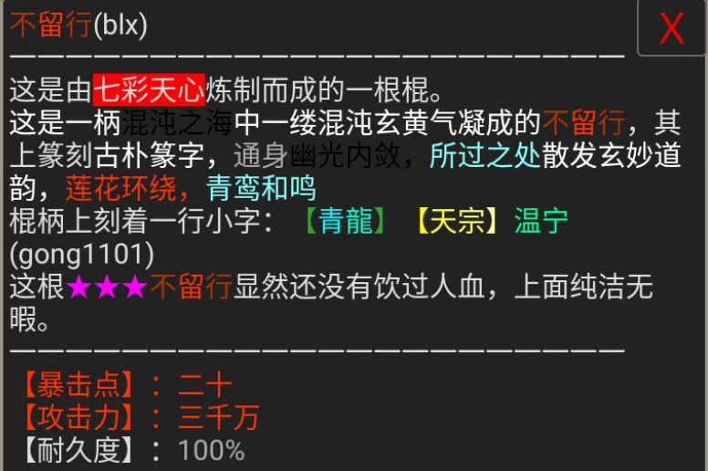 神魄商城/三星洞诸天道-如意金箍棒:棍,可以配合周年庆武学《五情七灭阵》使用,普攻带群攻效果。下线时记得脱下,否则会导致臂力大幅损失。