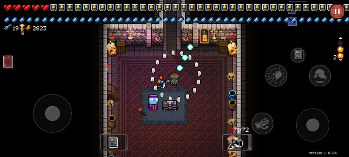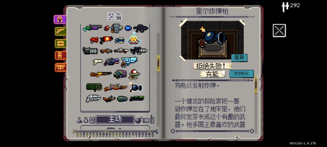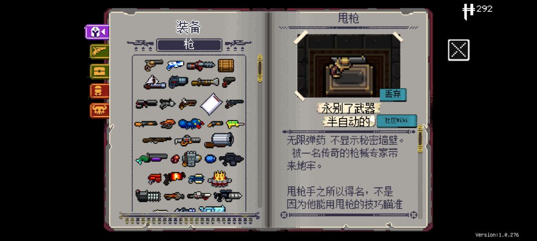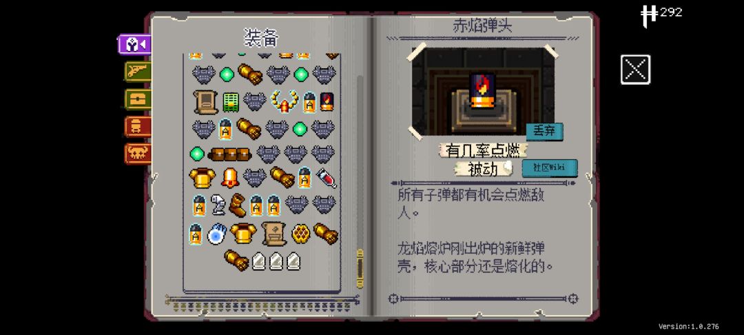 普通层不要大退,隐藏层可以无限大退,在隐藏层打开宝箱后清理完一个房间后大退可以在这一局游戏保留该道具,但是有时候宝箱的内容是固定的(触发条件不清楚)。这时候运气好可以一直拿到强力的被动道具,图4是我拿到8个a子弹(弹夹第一发攻击伤害➕100%)