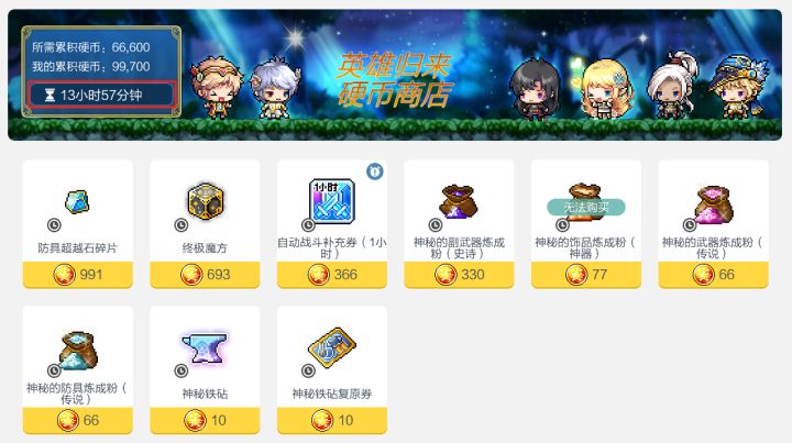 英雄归来商店将在18号上午10点结束,记得今天把活动币花完。
