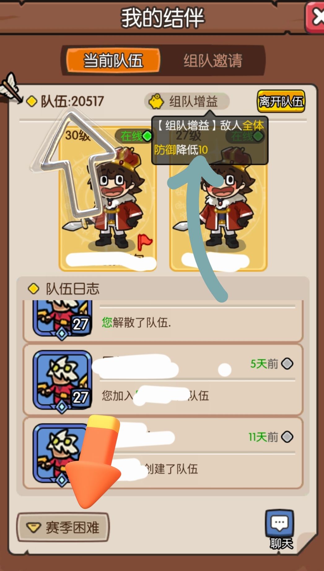 左上角箭头为房间码,可以分享给别人一起组队,左下角的箭头可以选择模式,只能由房主选择。