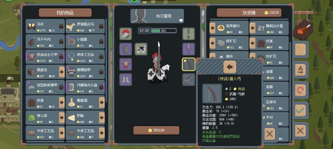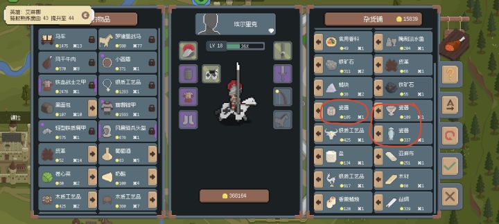 今天打了一天,用的是夸克下的版本。前期其实就选带骑兵的角色,然后副手可以选那个打猎的。给副手带上马,然后空的槽位配上弓箭带箭比较多的。然后十个左右的敌人可以放风筝,慢慢消耗。跑商的话从阿尔塔利斯带上麻布,丝绸,盐;然后向克里斯塔纳出售,克里斯塔拉带回银矿,还有图三中圈红的瓷器往阿尔塔利斯售卖。传说装备爆率比较低,史诗的爆率到后面基本上打土匪都很高,五星装备目前来说还是数值比较高的。有的时候低星级装备,要看他的品阶品阶高的甚至数值更好。#