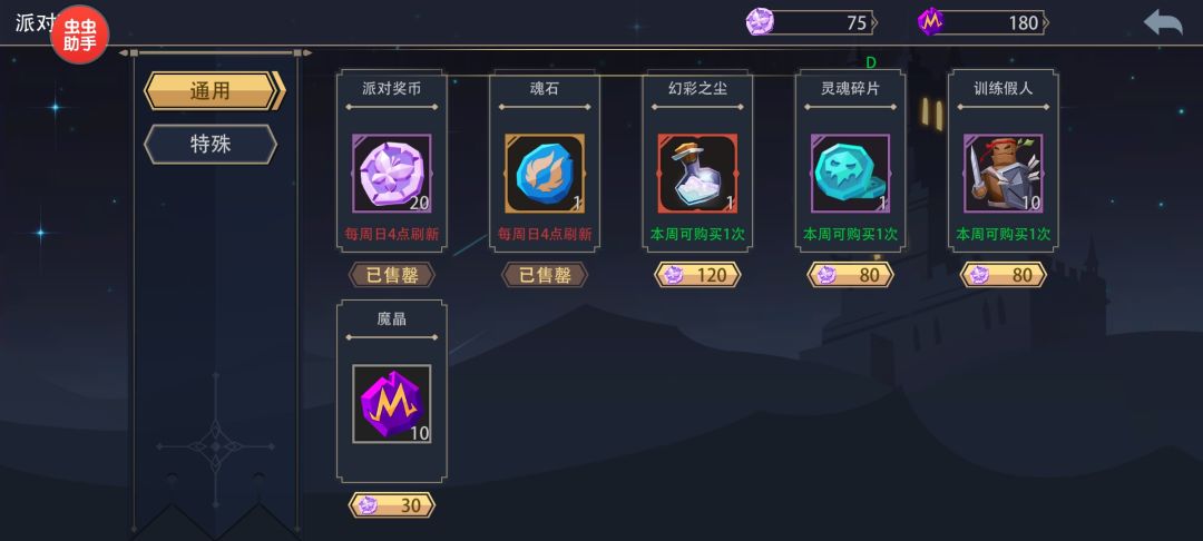 “英雄舞会”买一次货币和魂石,每周打满的币够换完,不过我懒得打了。