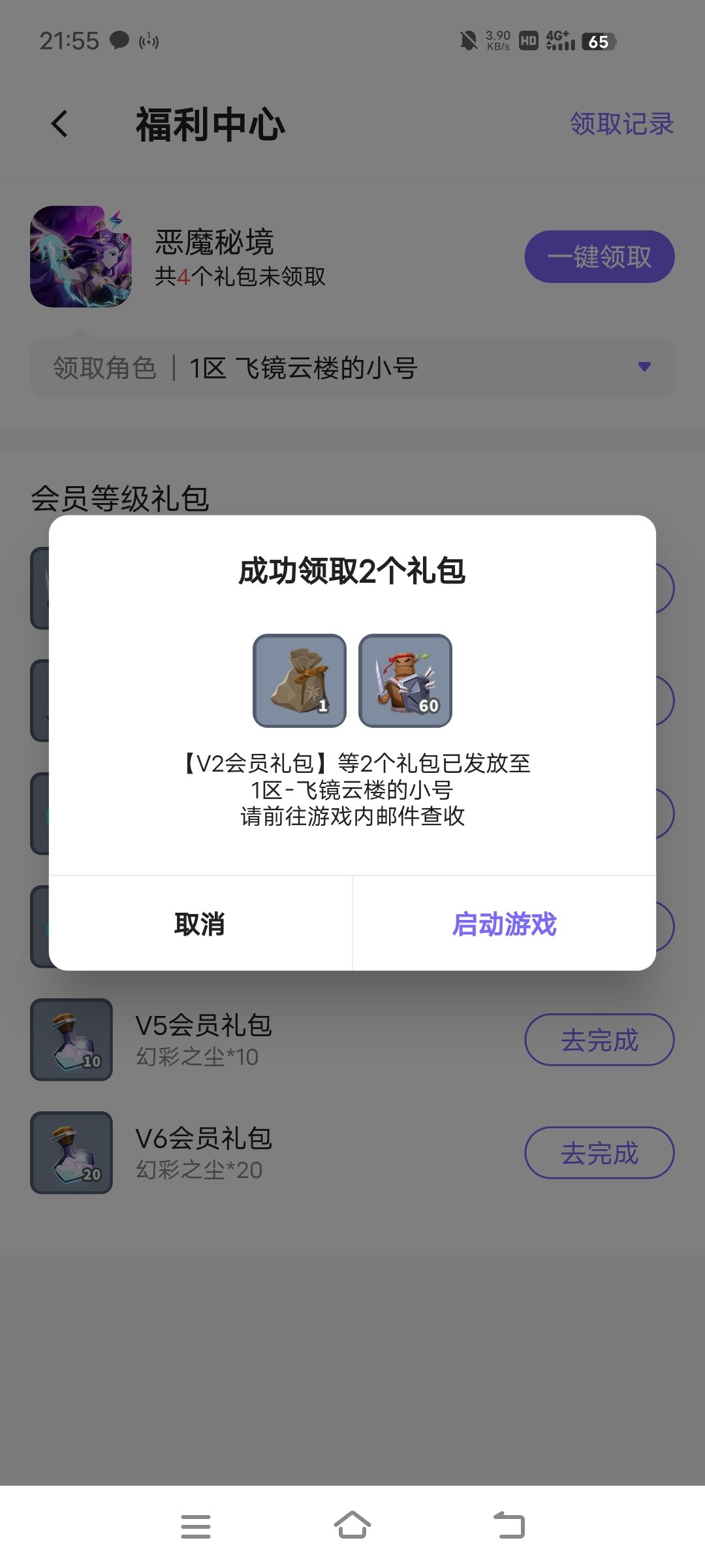 8.浏览器搜“雷霆游戏会员”,下载app后,找到“恶魔秘境”每个月领一次奖励