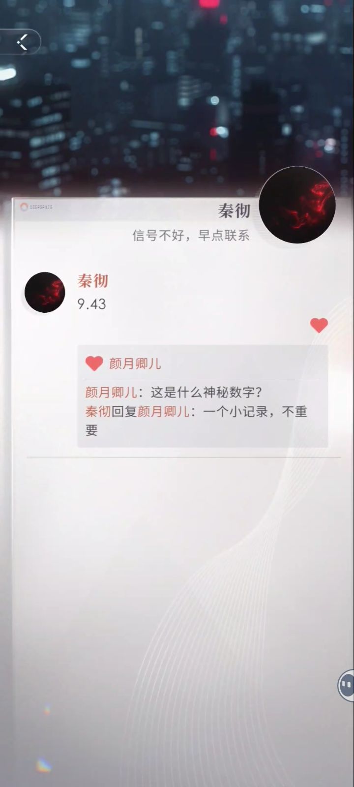 有姐妹知道秦彻的9.43有什么特殊含义吗?还有那个《子弹和翎羽》,彻子为什么回答:都给你。