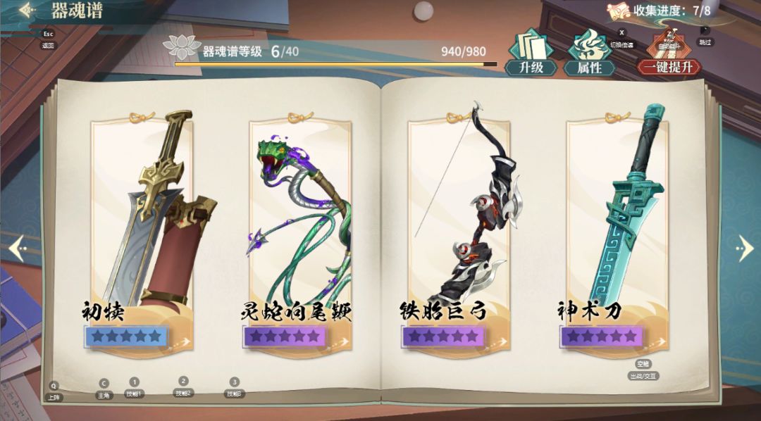 通过解锁器魂、提升器魂星级来增加图鉴值,从而提升图谱等级。本玩法会影响【江湖路】的进度,可通过水精玩法与其他玩家逐步拉开差距。如果条件允许,建议每次水精通关必买藏锋碎片(750金票=3碎片),其余3把传说(400金票=5碎片)根据自己的收支酌情购买。