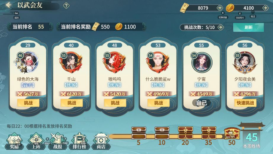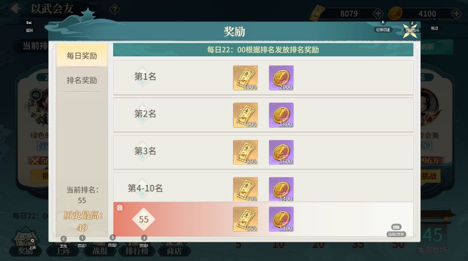 以武会友分为每日奖励和排名奖励: