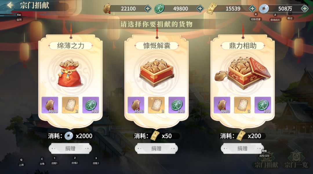 - 宗门商店:每周必换浩武晶和阵法碎片,其余的宗门贡献用来点宗门技能