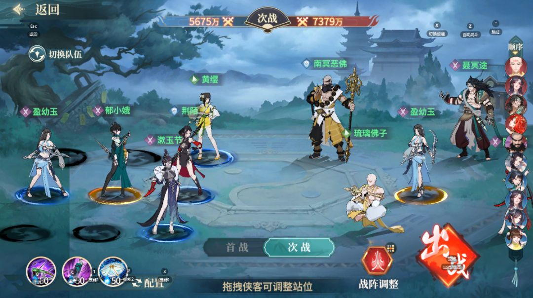 恶佛和佛子的搭配可以更有效地提升盈幼玉的输出,后面如果觉得这个队伍效果一般也可以转混搭毒或者鬼王队。坦克和辅助的组合可以换成其他搭配。