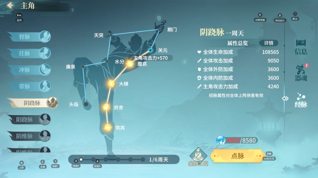 主线副本大家能推就往前推,一是会根据主线进度获得侠客令,二是主角每小时经脉收益和主线进度挂钩,如果目前主线推完了63章,正在推64章,那么经脉收益为元气640点/60分钟,先天胎息64点/60分钟。