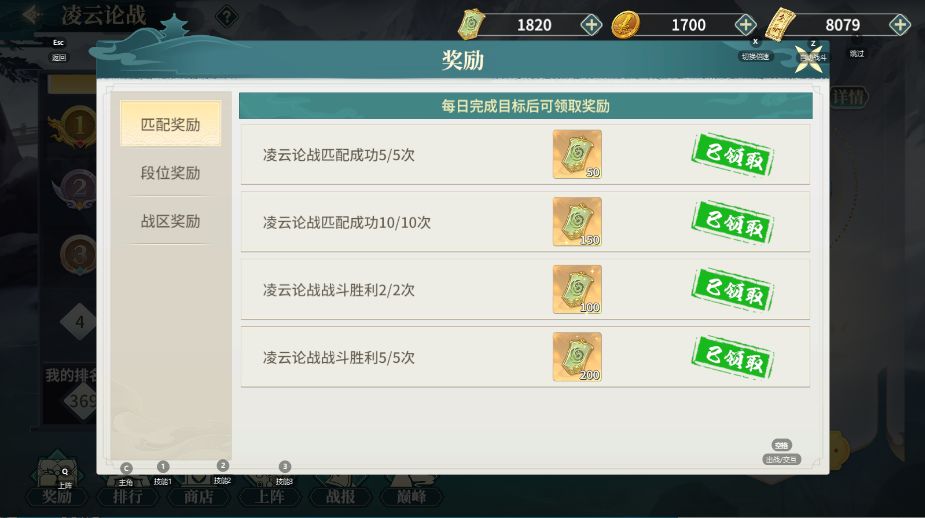 - 匹配奖励:每日完成相应场次的匹配和相应场次的胜场,即可获得凌云币奖励~(每天500币,一周3500币)