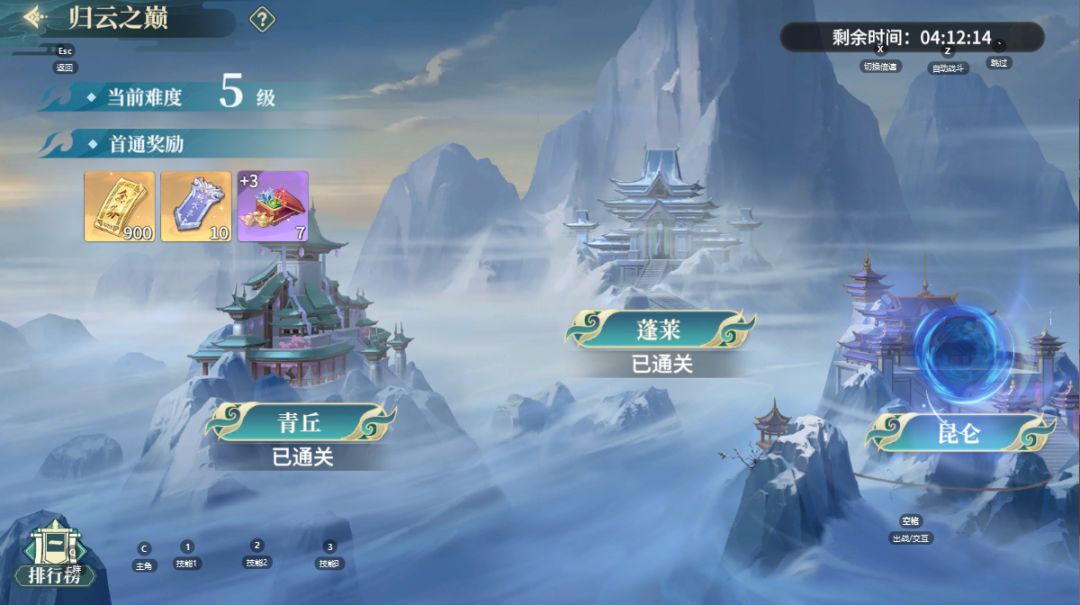 - 不觉云上:通关不觉上云楼指定层数,和战力挂钩,相对简单