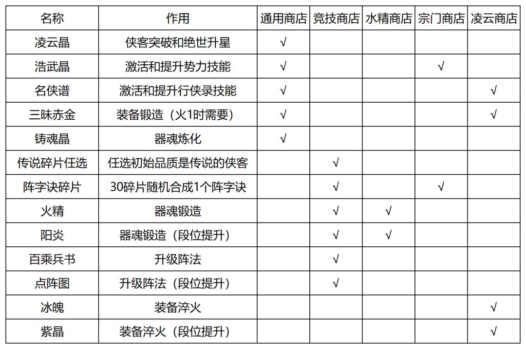 - 通用商店:凌云晶每周必买(需要3000金票),其余道具根据自身需求和金票余量酌情,个人推荐第一周可适量购买浩武晶,激活实力技能并增加属性
