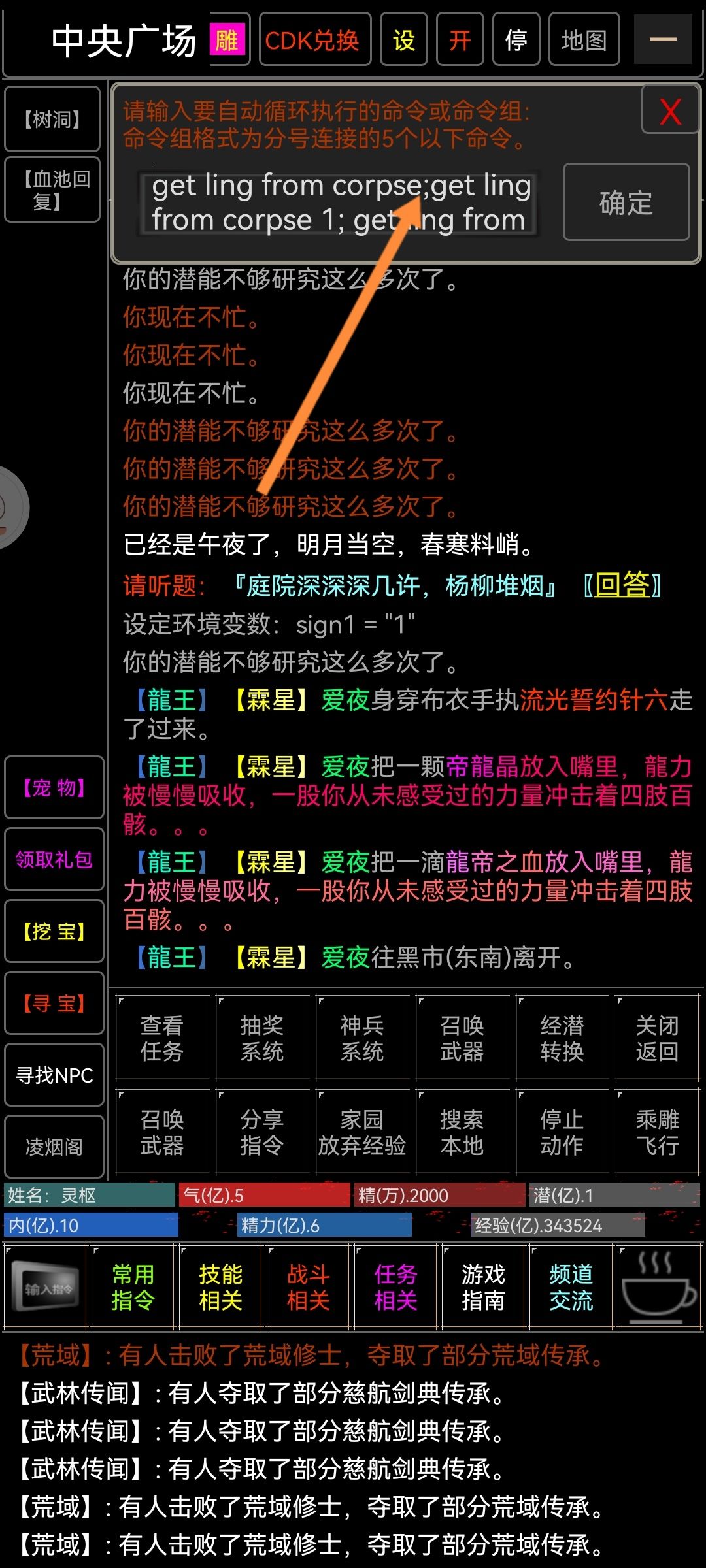 此处指令可以无限叠加但是指令使用过快会遭雷劈每段间只需用换行就行。