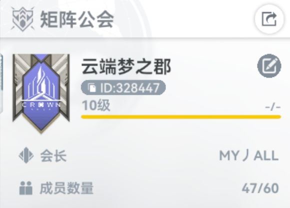 开服老登公会,公会id:328447,公会名:云端梦之郡,90%的成员都是95级以上,全员活跃,有公会群,2.5周年来临之际,招收一批长期活跃的玩家,无论你萌新,还是回坑的,亦或是跳槽的,都欢迎加入(不是长期活跃的就不要来了,非特殊情况,我们会卡3天前不上线的以及周活跃度低于500的)
