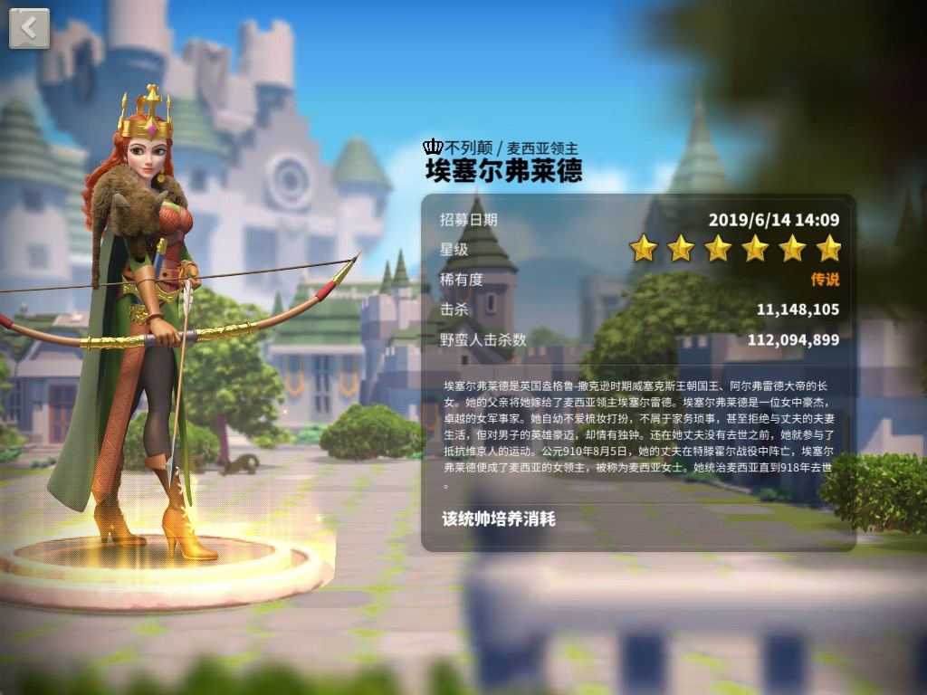 威塞克斯王朝国王阿尔弗雷德大帝的长女,卓越的女军事家,麦西亚的女领主,麦西亚女士埃塞尔弗莱德!在万国觉醒当中,埃塞尔弗莱德扮演着具有强大技能,有降低敌方三围属性奇效,玩家必备三大统帅之首的辅助统帅!埃塞尔弗莱德是野外战场的宠儿,附带诅咒的群伤来辅助友军,打击敌方的部队,降低其交换能力!