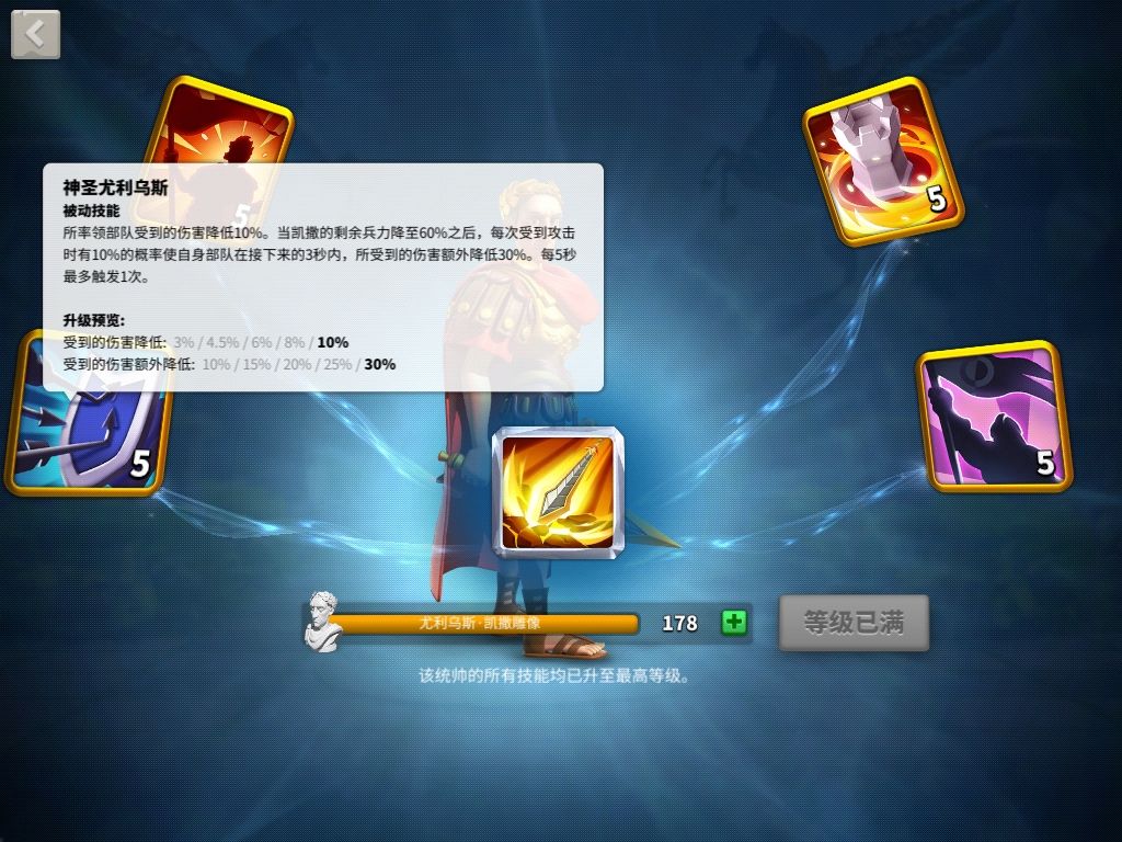 凯撒,可以说是最早期玩家可接触到,也是第一种主打属性,三围全面碾压对手来打出战损优秀的季节-又称为属性流的集结统帅!亚历山大,阿提拉都是续凯撒后属性流集结中佼佼者!除了属性超群,坦度也佳,完全不怕别人群殴,技能的伤害加成,也能弥补输出缓慢的致命问题,相当万金油的个统帅!