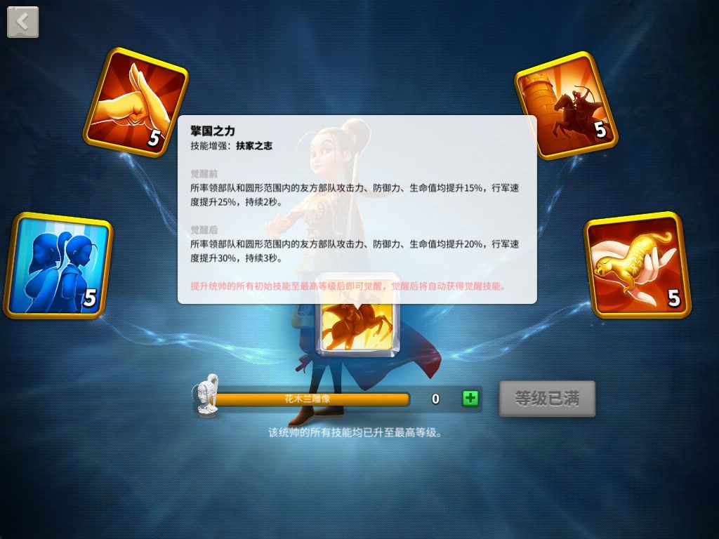 解析:花木兰的核心技能@木兰本体,吃瓜圣女也是如此,手中旗子才是本体,而技能提供三围属性与跑速,将会大幅强化友军在野外战损交换能力!尤其行军速度加成,在追击或部队撤退的掩护方面,具有非常好的表现,速度快,特定战场比如埃及,简直就是必备统帅!木兰存在,野外能打更加激进,保证队伍进退自如!