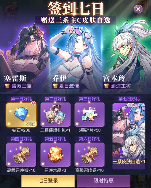 ✪活动二 7日登录签到 赠送三系主C皮肤自选✪