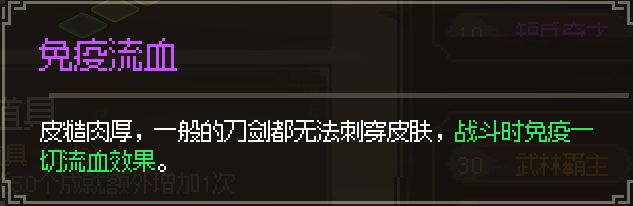 乙级特征:免疫流血;获取途径:在霖安城我们会遇到一个道士,他会说我们有血光之灾,要我们交5贯钱,会帮我们逆天改命。选择交钱后获得此特征。