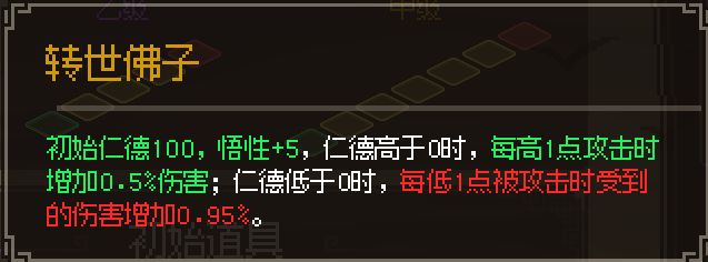 这里需要将得道高僧特征和转世佛子特征进行区分,转世佛子是包含了得道高僧的同时还附带了悟性+5以及初始仁德为100两个词条的。