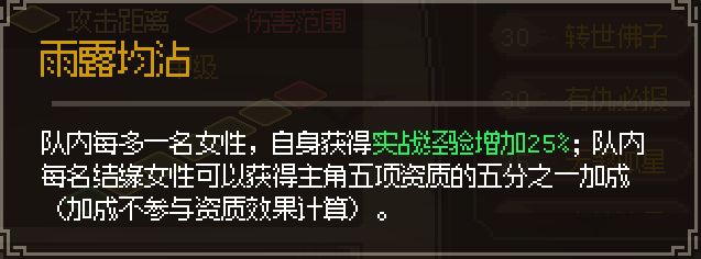 甲级特征:雨露均沾,获取途径:结缘15名异性伴侣。